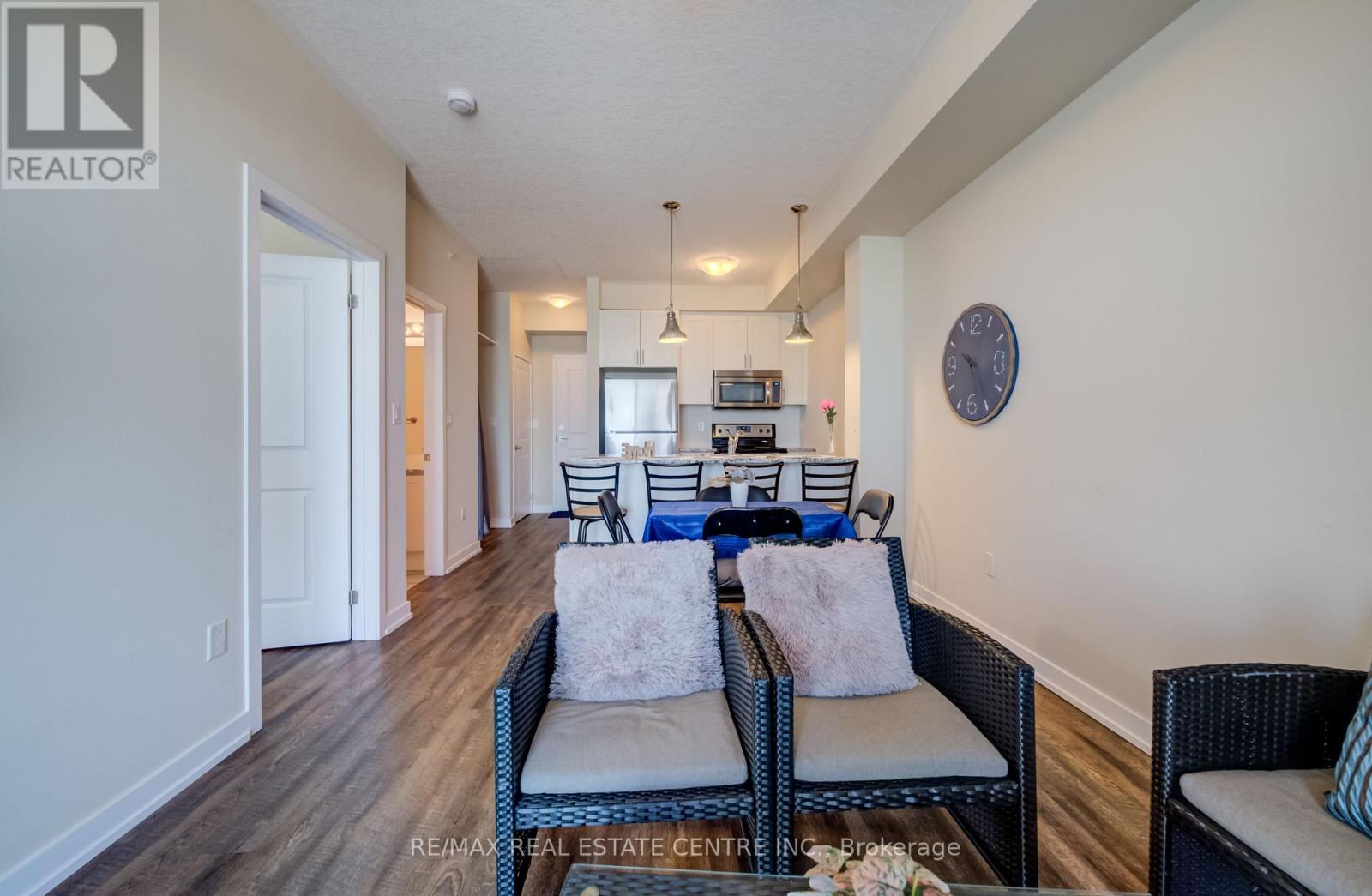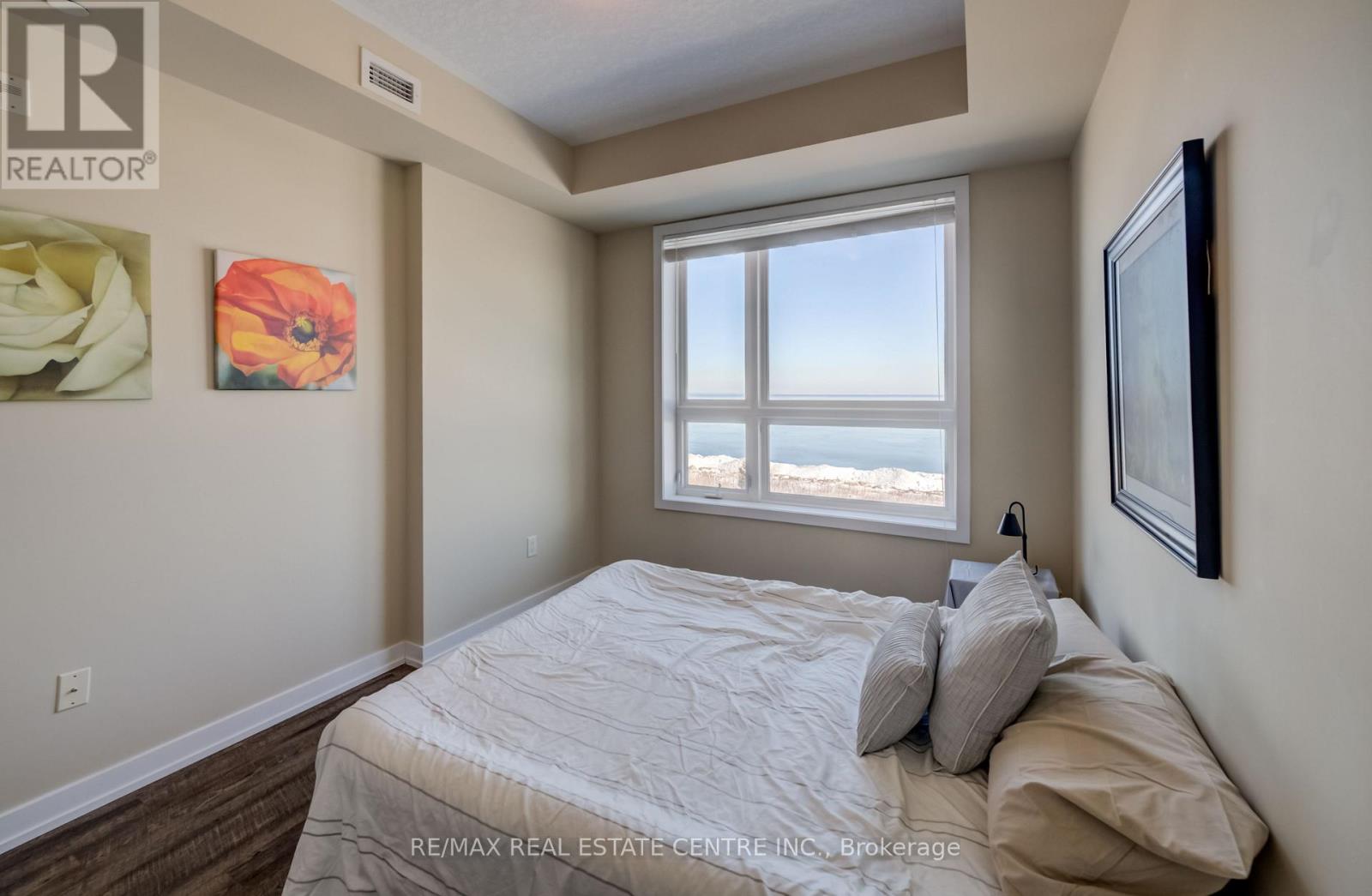 $708 MonthlyBeautiful 1 bedroom plus 1 den with unobstructed Lake Ontario views from Living Room, balcony and picture window in primary suite. Premium unit with 9 foot ceilings, quartz countertops, ensuite laundry, matching stainless steel Whirlpool appliances, under ground parking space. Fantastic common amenities include massive rooftop terrace with Lake Ontario views, party room, gym, bike storage. Don't miss this great home. (id:64384)