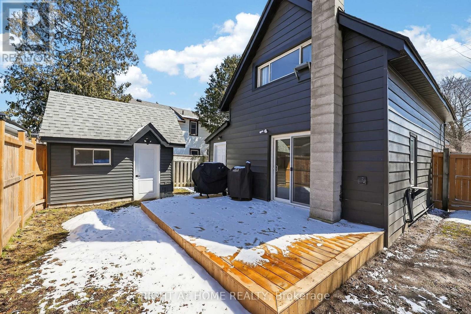A wonderful opportunity for first-time buyers, this charming detached 2-bedroom home is move-in ready. From the moment you arrive, the inviting curb appeal draws you in. Inside, you'll find a bright living and dining space featuring updated finishes, while the stylish kitchen completes the main floor with quartz countertops, a newer dishwasher, and a walkout to a brand-new deck, perfect for entertaining. Upstairs, an updated bathroom adds a modern touch, and two well-sized bedrooms complete the space. The backyard is fully fenced for privacy, creating a great setting for relaxing or spending time with family and friends. A workshop and storage shed with hydro provide excellent additional space for hobbies or storage. With a paved driveway and thoughtful updates throughout, this home is the perfect place to put down roots, conveniently located close to amenities and Midland Bay. (id:64384)