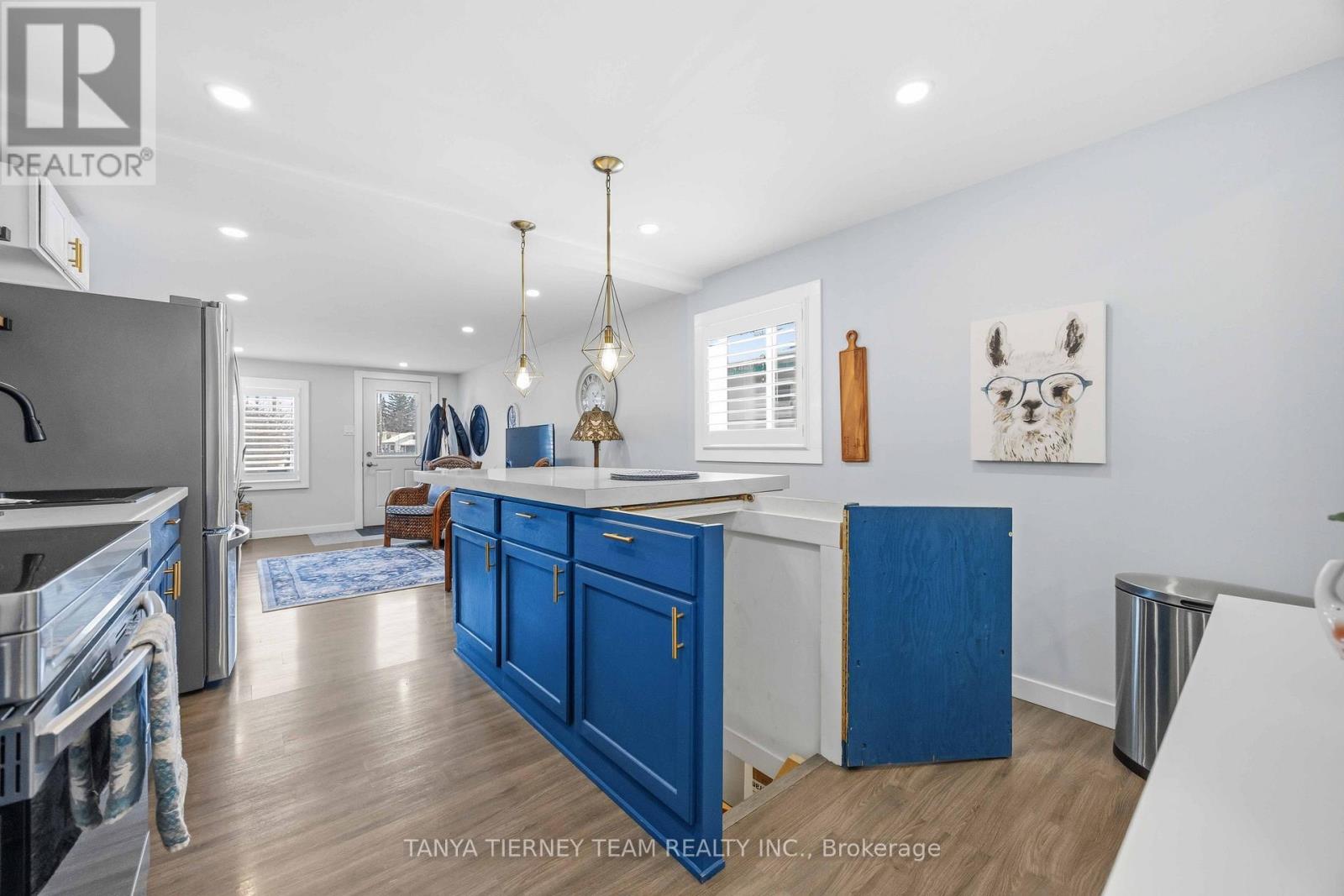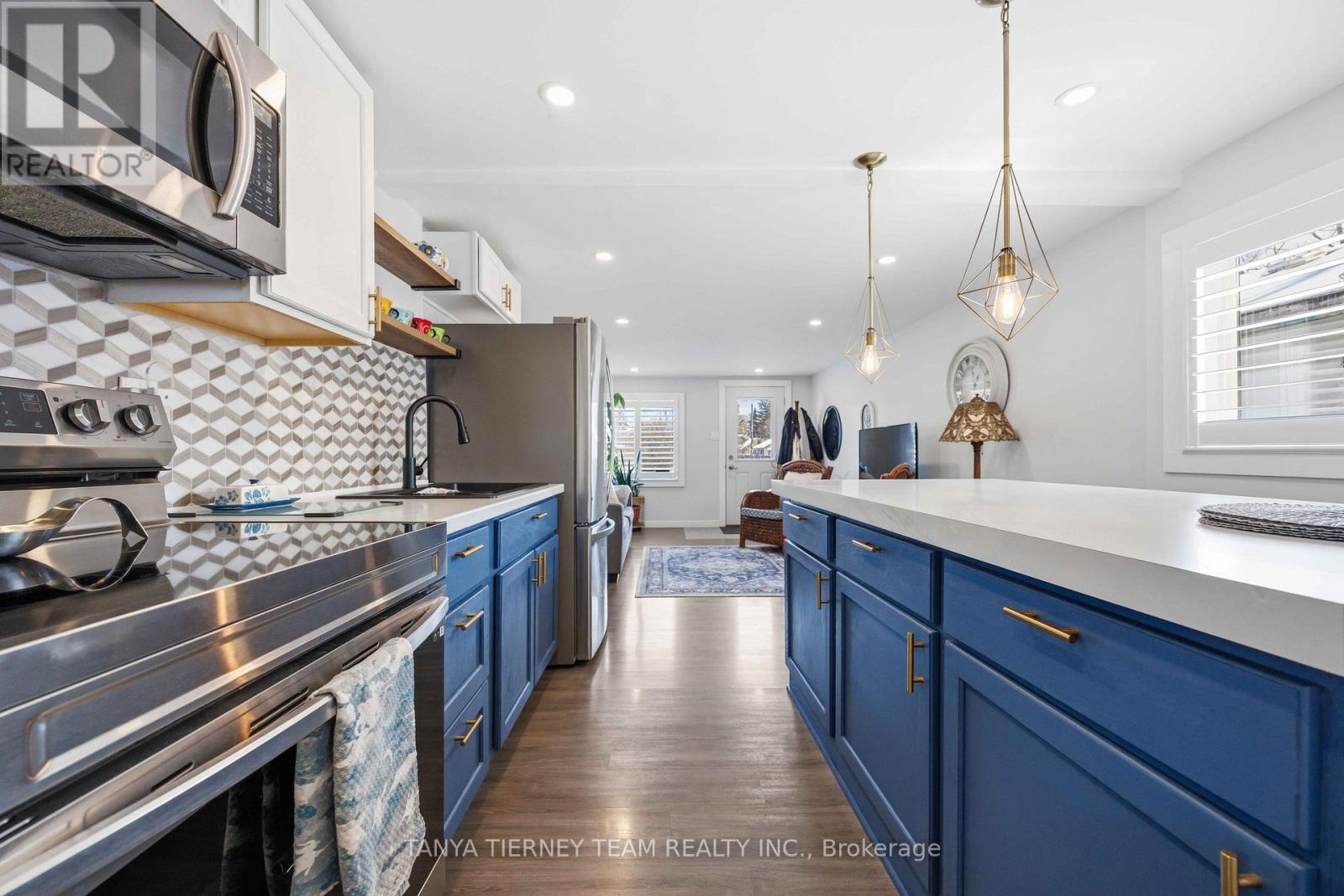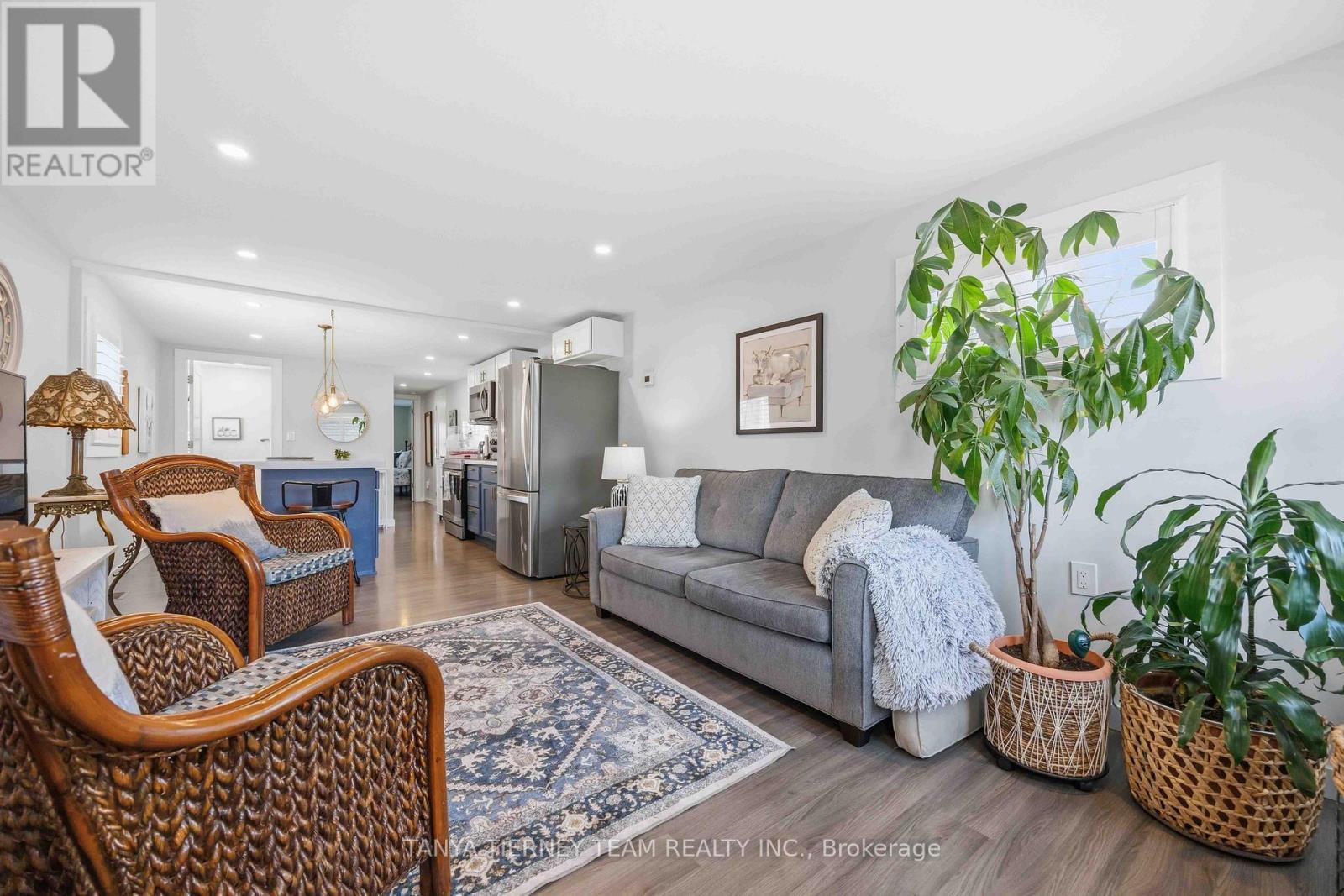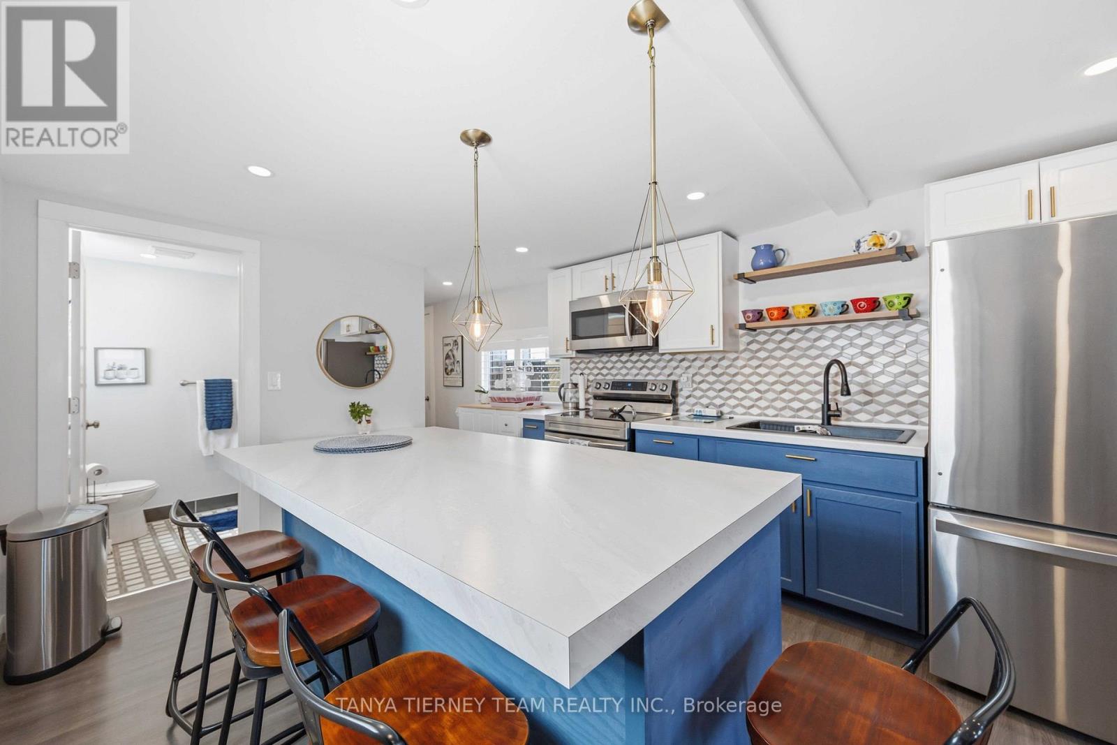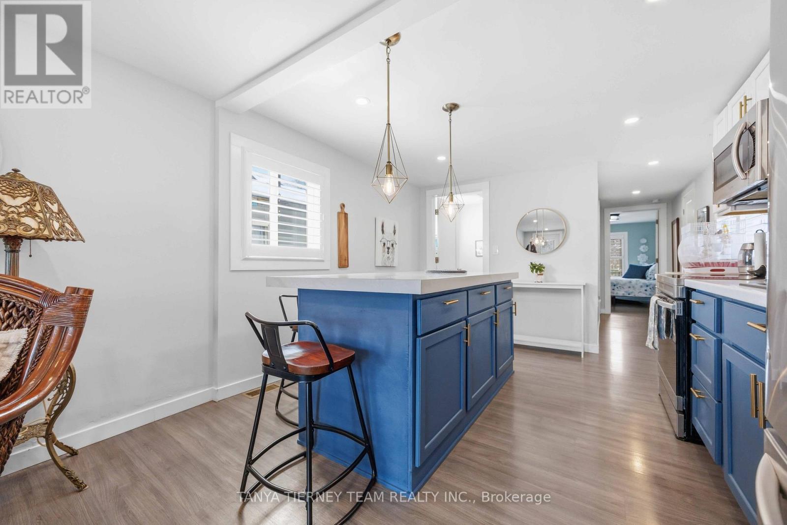 Cute and cozy bungalow situated on a oversized deep lot, perfect for first time buyers or those looking to downsize, to the picture perfect community of Cobourg. Close to the vibrant downtown with ample shops and dining options, and just minutes to amazing Cobourg beach! Inside you'll find a recently renovated home, with many updates. Featuring a stunning open concept living area, with bright pot lights, updated flooring and california shutters throughout (2022). The gourmet eat in kitchen boasts newer counters, modern stainless appliances with new stove (2024), ceramic backsplash and beautiful cabinetry with accent hardware throughout. Don't miss the secret staircase with hidden access under the large centre island and leading to additional living space below, perfect for a rec room, kids play zone, hobby room or man cave! The thoughtful layout continues with a lovely 3 piece bath and laundry combo (washer/dryer 2025) with barrier free shower and two well appointed bedrooms, including a walkout to the large deck and deep yard with newer garden shed (2023). Additional updates include the furnace in '21, central air '22, owned HWT '21, front deck '25, sump pump '24 and freshly painted throughout in '25. (id:64384)