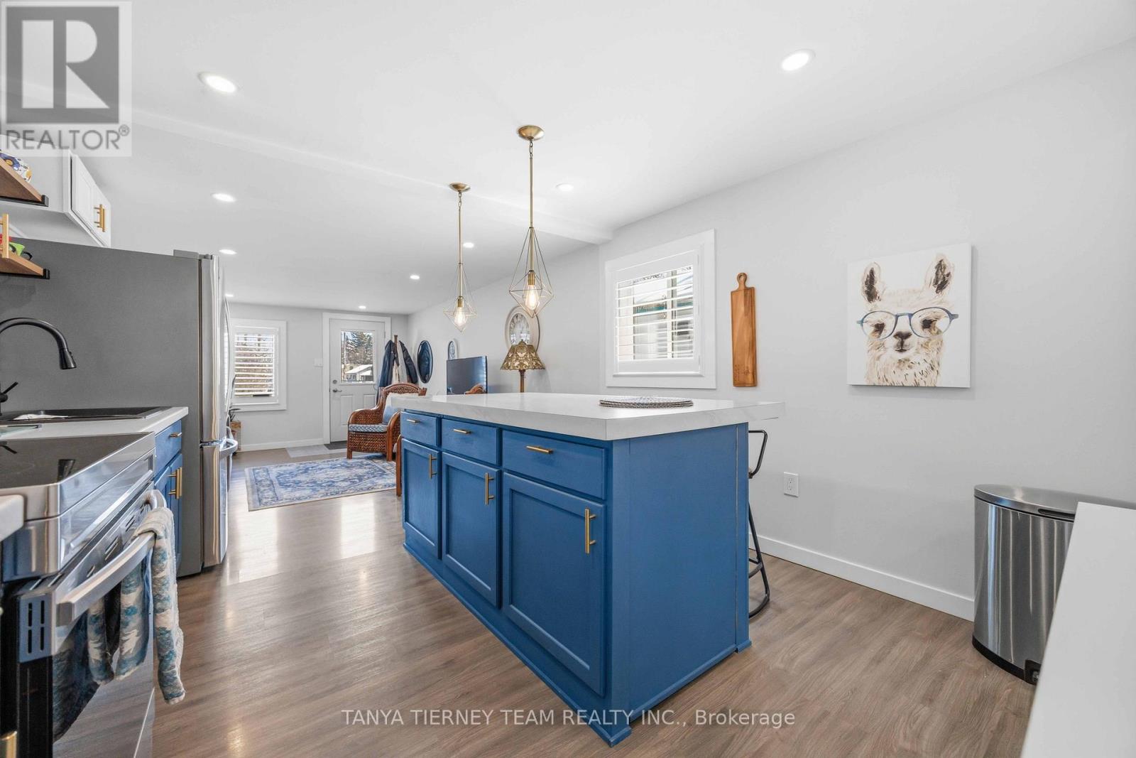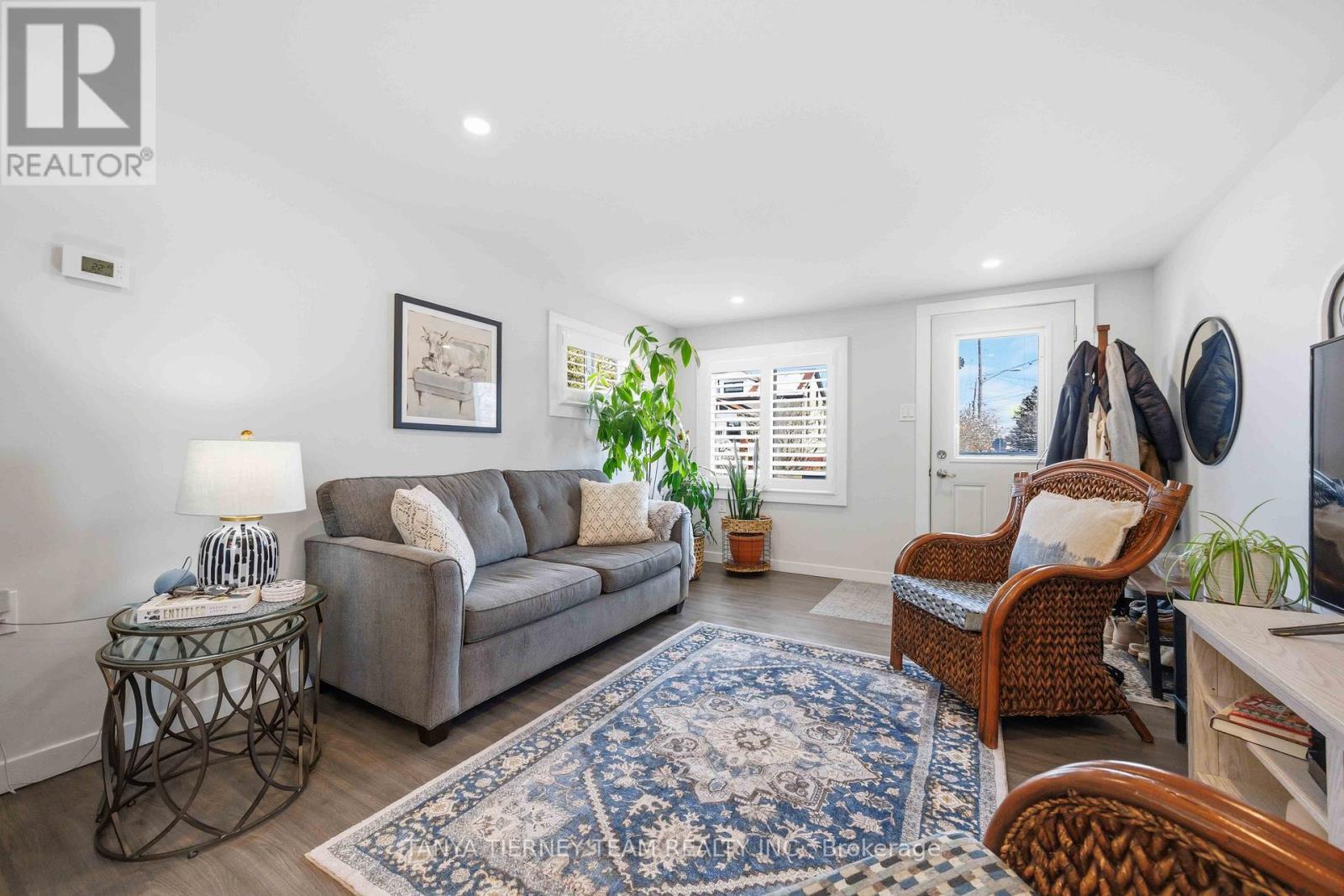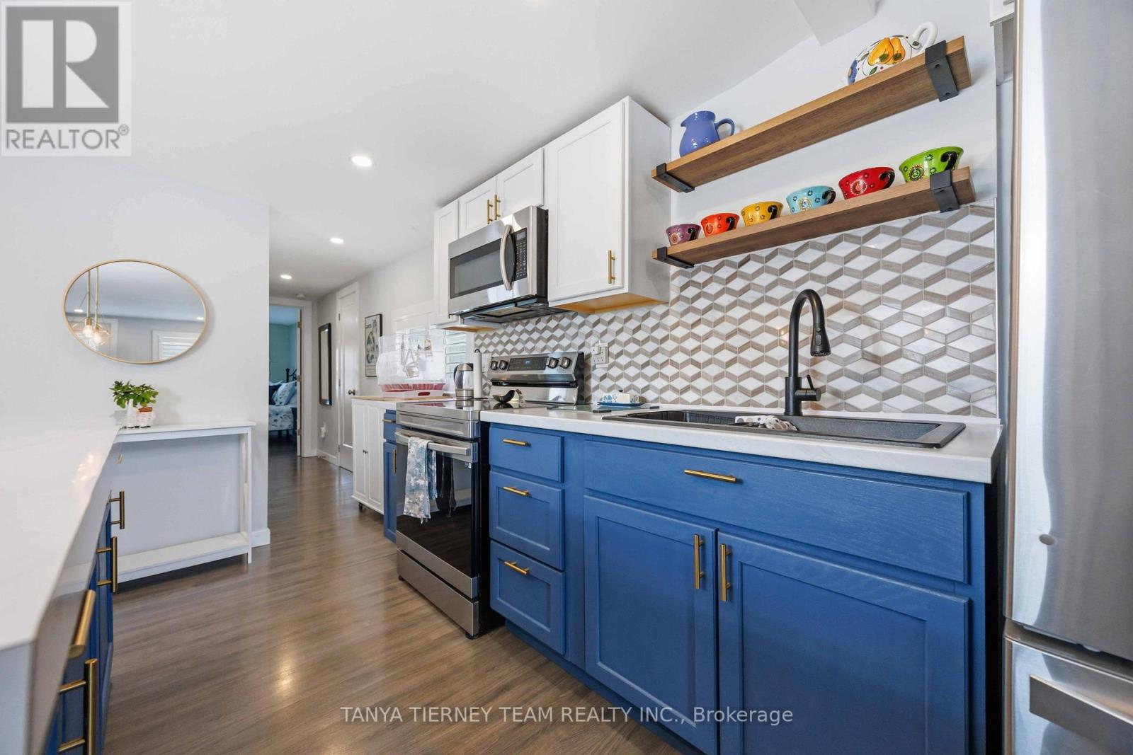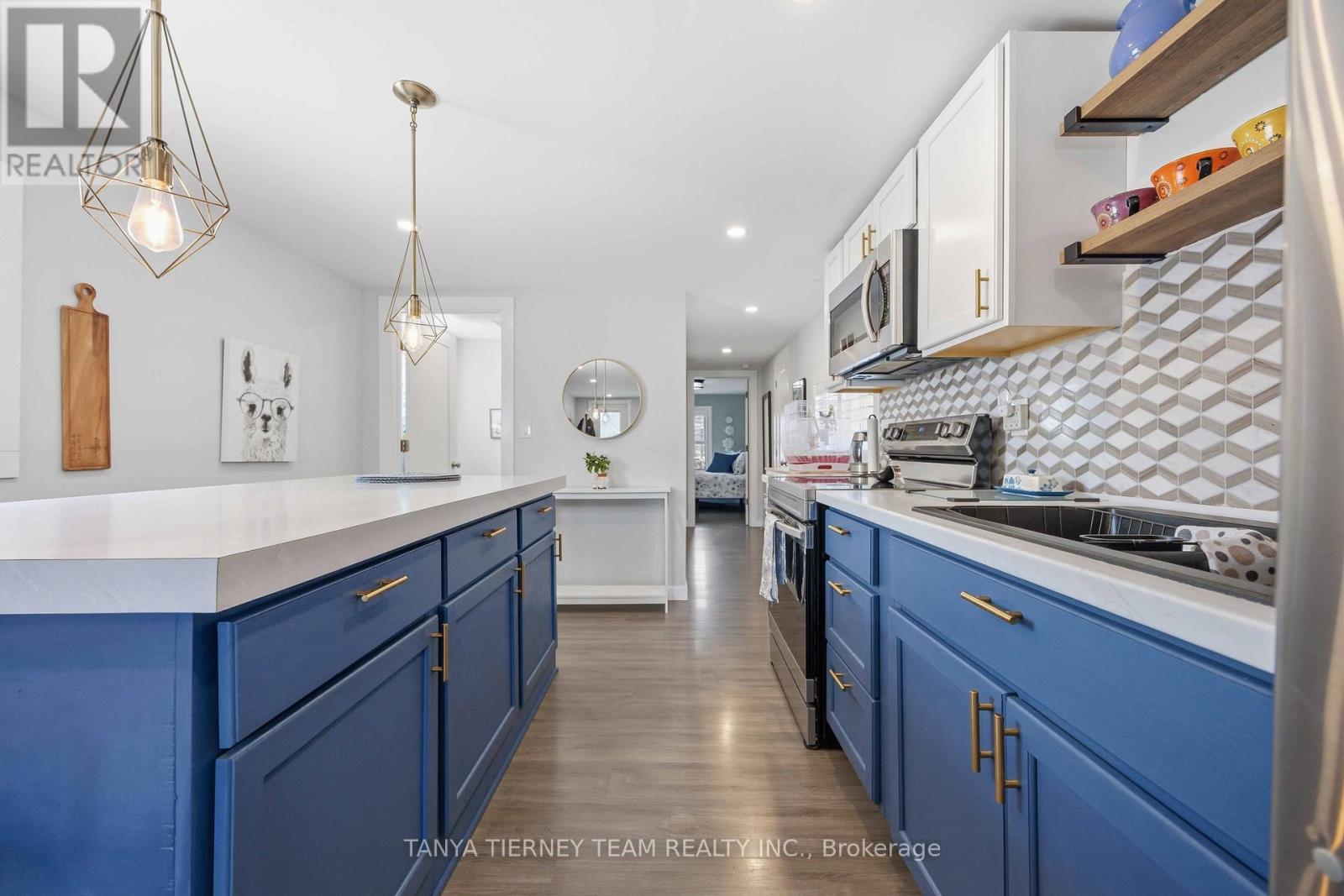 Cute and cozy bungalow situated on a oversized deep lot, perfect for first time buyers or those looking to downsize, to the picture perfect community of Cobourg. Close to the vibrant downtown with ample shops and dining options, and just minutes to amazing Cobourg beach! Inside you'll find a recently renovated home, with many updates. Featuring a stunning open concept living area, with bright pot lights, updated flooring and california shutters throughout (2022). The gourmet eat in kitchen boasts newer counters, modern stainless appliances with new stove (2024), ceramic backsplash and beautiful cabinetry with accent hardware throughout. Don't miss the secret staircase with hidden access under the large centre island and leading to additional living space below, perfect for a rec room, kids play zone, hobby room or man cave! The thoughtful layout continues with a lovely 3 piece bath and laundry combo (washer/dryer 2025) with barrier free shower and two well appointed bedrooms, including a walkout to the large deck and deep yard with newer garden shed (2023). Additional updates include the furnace in '21, central air '22, owned HWT '21, front deck '25, sump pump '24 and freshly painted throughout in '25. (id:64384)