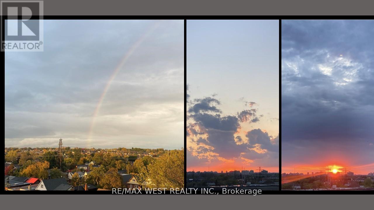 For short term lease at Reunion Crossing Condos. Brand new 1 Bed + Den suite featuring 9-10 ft ceilings, floor-to-ceiling windows with roller shades, and modern finishes throughout. Open-concept layout with a sleek kitchen offering quartz countertops, ceramic backsplash, integrated dishwasher, and stainless-steel appliances. Bright bedroom with sliding doors and custom closet organizer, plus a west-facing living area with beautiful sunset views. Enjoy premium amenities including a fitness centre, party room, pet spa, BBQ area, and rooftop terrace. Conveniently located near transit and the future SmartTrack GO Station, with easy access to High Park, Little Italy, and Corso Italia. Move-in ready. (id:64384)