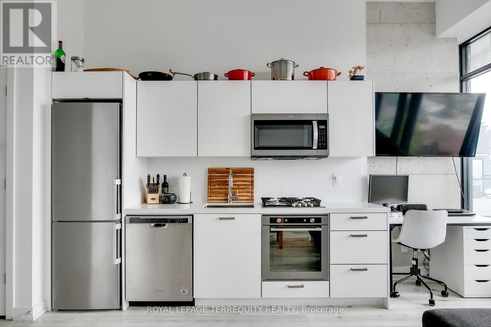 Welcome to East 55! This Bright Junior One Bedroom Offers Floor-to-Ceiling Windows With Tons of Natural Light, and an Ultra-Chic Loft Aesthetic with Exposed Concrete Ceilings and Concrete Wall Accents. Enjoy Soaring Ceilings in Living Areas - Just Shy of 12 Feet! This Stylish Building was Built by Lamb Developments. The Modern Kitchen Features Quartz Countertops, Stainless Steel Fridge, Gas Cooktop, Stove, Dishwasher & Microwave. Hardwood flooring throughout. For ease and convenience, the unit has a Full Size Washer & Dryer. Building Amenities: Concierge, Party Room, Outdoor Pool, BBQ Terrace, Exercise Room, Visitor Parking, Boardroom & Co-Working Room. Rent Includes Gas, Heat, Water & Air Conditioning. Tenant responsible for hydro and heat pump rental fee. Fantastic Location - Steps to St. Lawrence Market, Distillery District, George Brown College, Restaurants, Shops. Two-Minute walk to both King and Queen TTC Streetcar stop and the Future Ontario Line Station. Easy & Quick Access to the Don Valley Parkway and Gardiner Expressway. (id:64384)