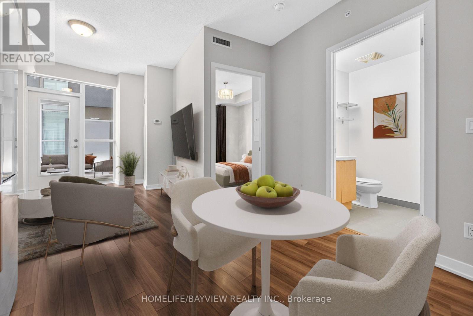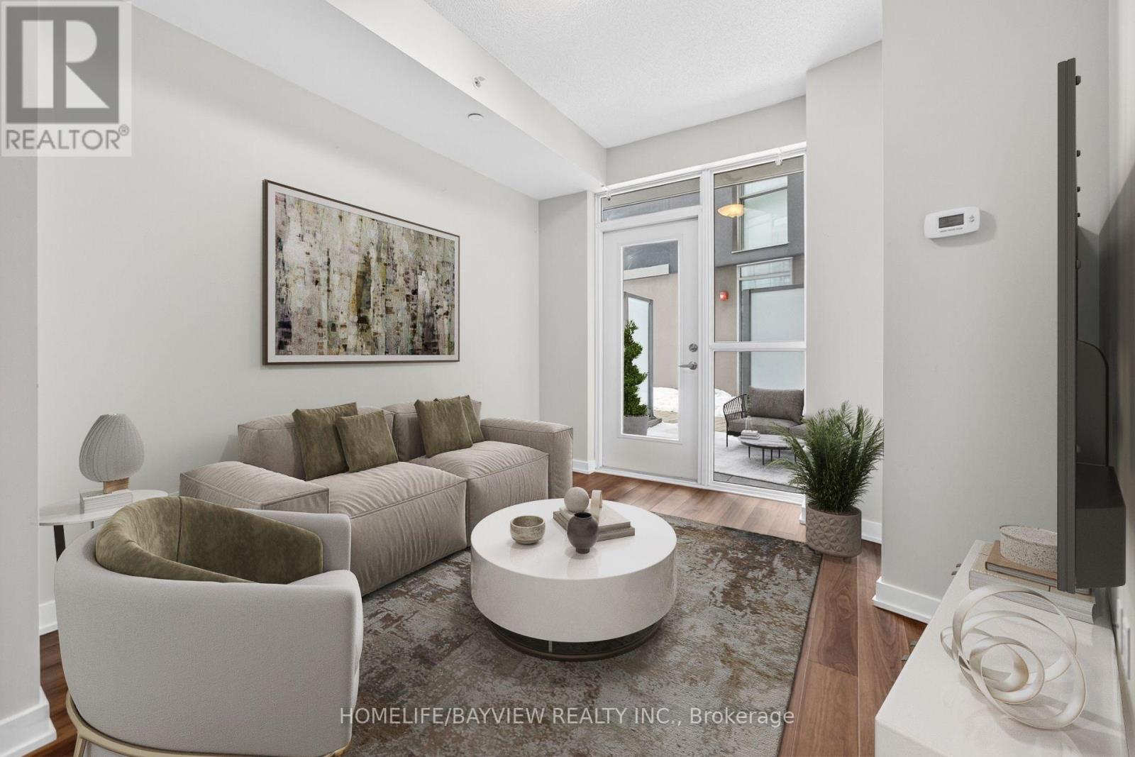 Stunning and bright one bedroom in Link Condos, located in the highly desirable Bronte Creek / Orchard community. Extremely functional layout with ample storage. Upgrades including wide plank laminate flooring throughout, quartz countertops and new backsplash in kitchen. Floor to ceiling windows allow ample natural light. This end unit with walkout to a large terrace creates a very private oasis in the city. Direct access from the terrace to the courtyard, bbq area and exceptional amenities. Enjoy concierge service and amenities, including a fitness centre/gym, games room, plunge pools (hot and cold), saunas (dry and steam), meeting room, party room and landscaped courtyard. Ideally situated close to Bronte Provincial Park trails, transit, schools and shopping. Some photos have been virtually staged. A must-see! (id:64384)